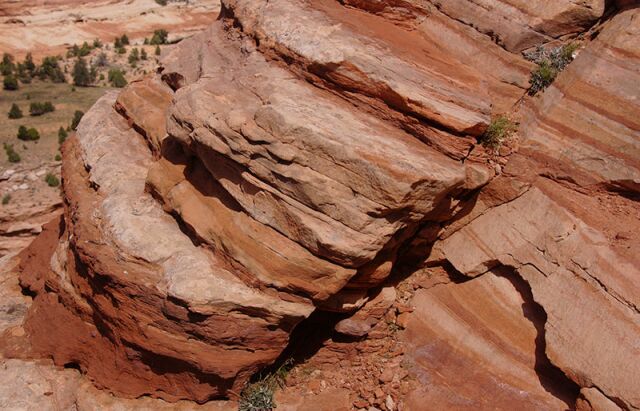 Afloramiento geológico impresionante con sedimentos rojos y lacustres, ideal para explorar la historia geológica y disfrutar de paisajes únicos.