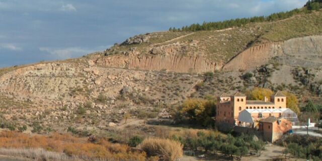 ¿De dónde procede el agua termal de los Baños de Alicún de las Torres? Es un agua de lluvia que se infiltra en profundidad, se calienta y asciende por una zona de falla. Los estudios hidrogeológicos indican que las aguas de los manantiales de Alicún de las Torres proceden fundamentalmente del acuífero carbonático de la Sierra de Baza y, en menor medida, con influencia de las aguas procedentes del acuífero de El Mencal. Los científicos estiman que el reservorio que alimenta las aguas de los manantiales termales de Alicún se sitúa entre 650 y 800 m de profundidad a una temperatura de 56ºC. El agua profunda aprovecha las zonas de falla (roca triturada permeable) para ascender hasta la superficie donde mana a unos 35ºC.