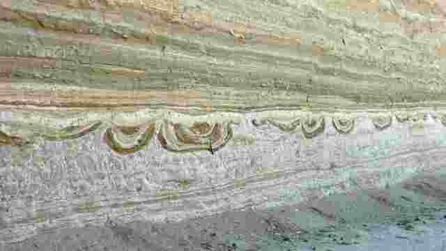 Capas de sedimentos deformadas por antiguos terremotos conservadas en los materiales del Geoparque de Granada.