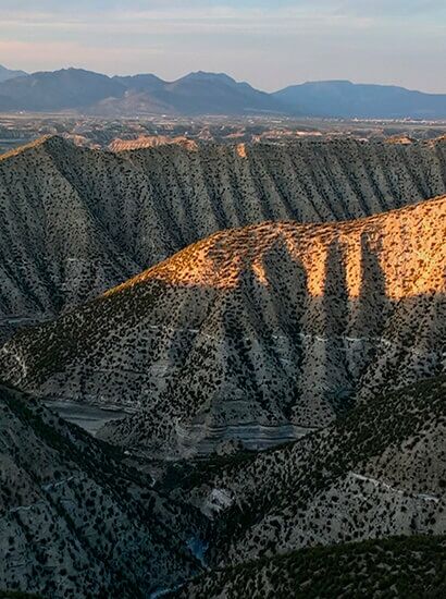 Paisajes áridos y laderas afiladas esculpidas por el agua: así son los Badlands del norte de Granada, un espectáculo geológico de formas únicas.